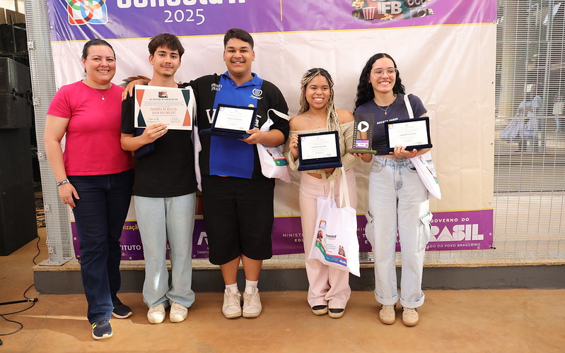 Os grandes vencedores da noite foram os estudantes do IFB Campus Estrutural, com o curta “Lama Urbana”, que conquistou o prêmio de Melhor Curta-Metragem Documentário. A equipe, formada por Kamilly Wittória Gomes, Karolainy Alves dos Santos, Lívia Miranda, Ana Luíza Souza e João Victor dos Santos, apresentou uma narrativa poética e crítica sobre o cotidiano nas periferias urbanas.